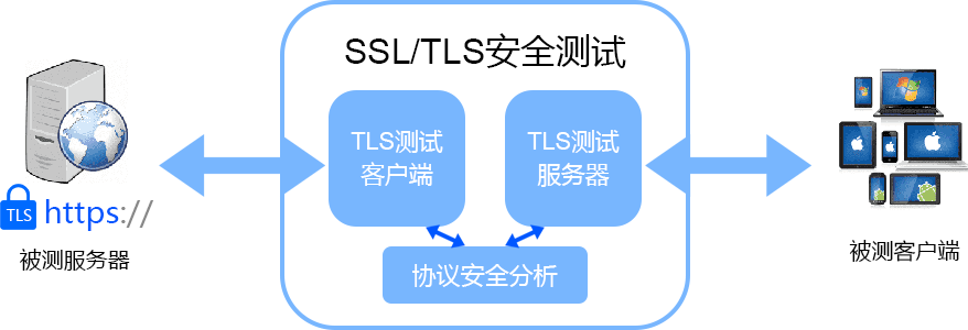 TLS协议安全测试平台,基于国际的SSL/TLS标准,以及我国的SSL VPN、TLCP标准,从协议的合规性、加密套件、安全漏洞和随机数质量等方面进行安全测试,支持同时进行对TLS服务器和客户端进行双向测试。平台的核心是创建TLS测试客户端和TLS测试服务器,基于TLS协议标准,与被测目标进行通信,来检测被测目标是否存在安全问题。